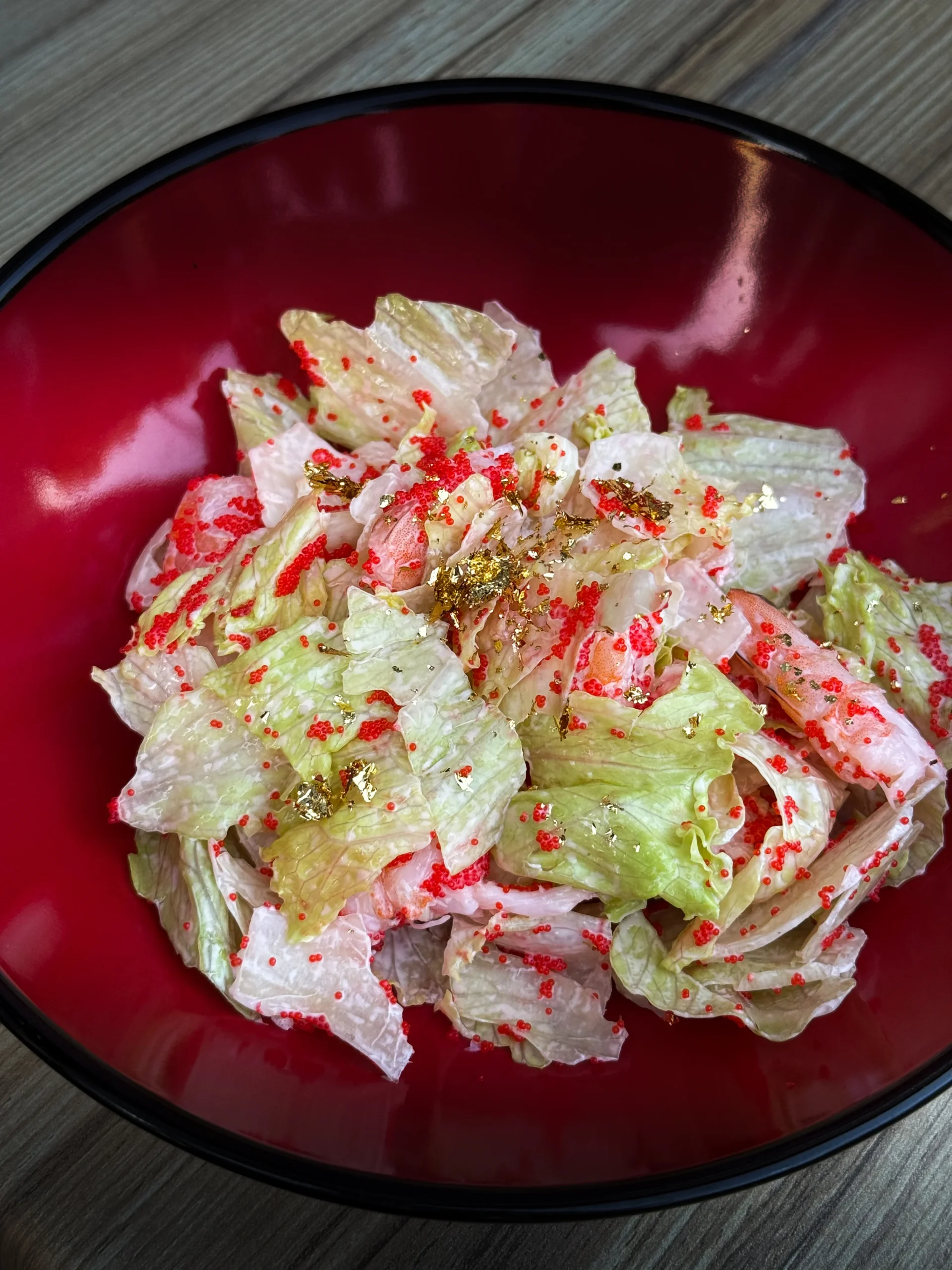 mit Cocktail-Garnelen, Eisbergsalat, japanische Mayonnaise, Tobiko